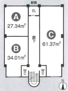 | 交通 | 近鉄鵜方駅前 | 賃料 | 38,500円/月(税込) | 共益費 | なし | 敷金 | なし | 保証金 | 70,000円 | 面積 | 2階部分27.34㎡(8.27坪) | 構造 | 鉄筋コンクリート造5階建 | 建築 | 平成6年3月 | 備考 | 近鉄鵜方駅前でとても便利 オフィス、スクール、サロンなどに適します エレベーターあり |